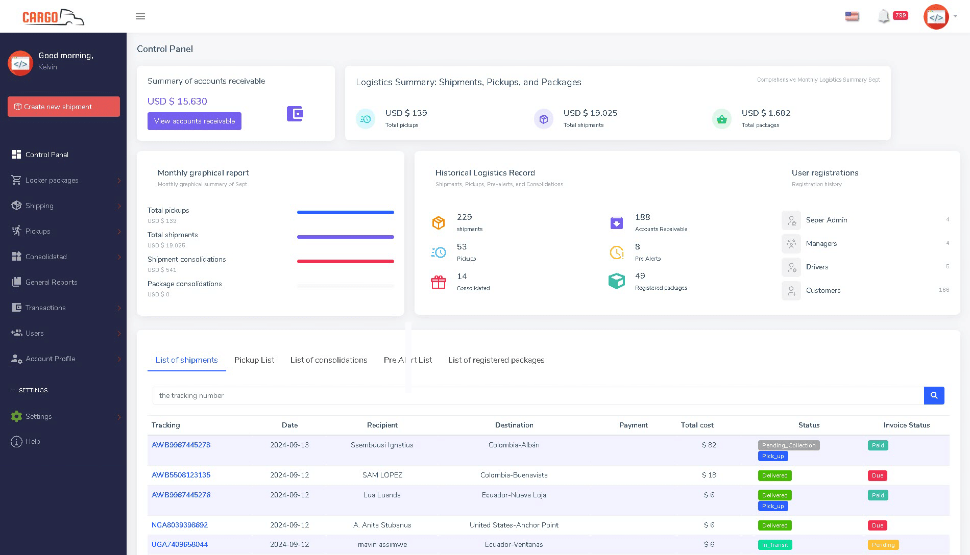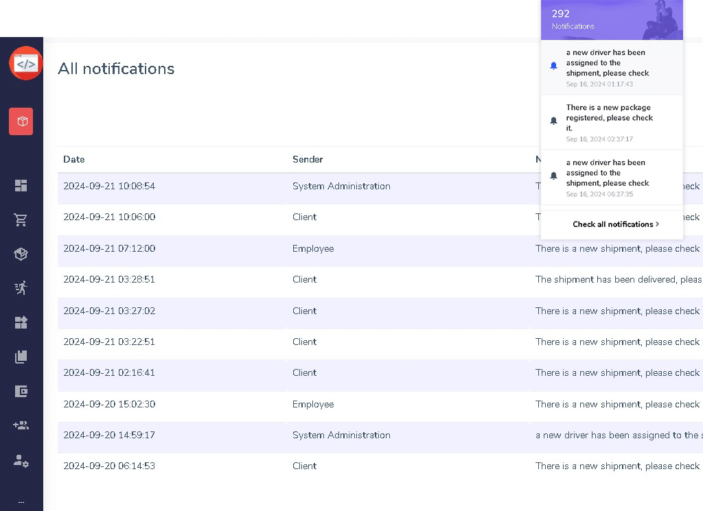Add shipment packages from small boxes, loose cargo to 40ft containers. Consolidate different packages to a shipment, know exactly what package for which clients is in each consolidated shipment and status.
